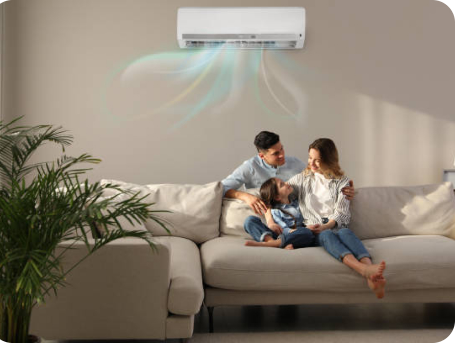 La PAC air/air prélève la chaleur de l’air extérieur et la diffuse directement à l’intérieur via des unités de ventilation, ce qui en fait une solution idéale pour les foyers équipés de chauffage électrique.